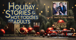 Holiday Stories & Hot Toddies for Adults with Storyteller BZ Smith and Musician Peg Reza – Free Admission MUST RSVP