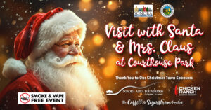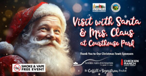 at Santa’s House at Courthouse ParkSanta and Mrs. Claus are spending the holidays right here in Sonora! They’ll be joining the Historic Downtown Sonora Christmas Parade on November 28, then spreading cheer at Santa’s House in C...