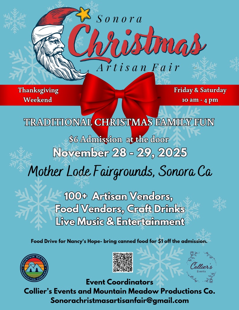 Collier’s Events and Mountain Meadow Production Co. are pleased to announce the 3rd Annual Sonora Christmas Artisan Fair.
