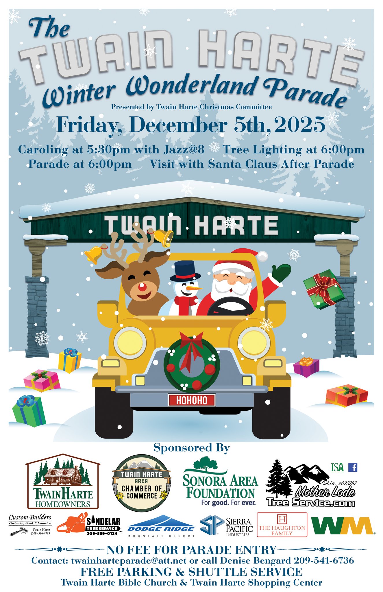 Free shuttles start at 5 PM from Twain Harte Village Shopping Center and Twain Harte Bible Church.